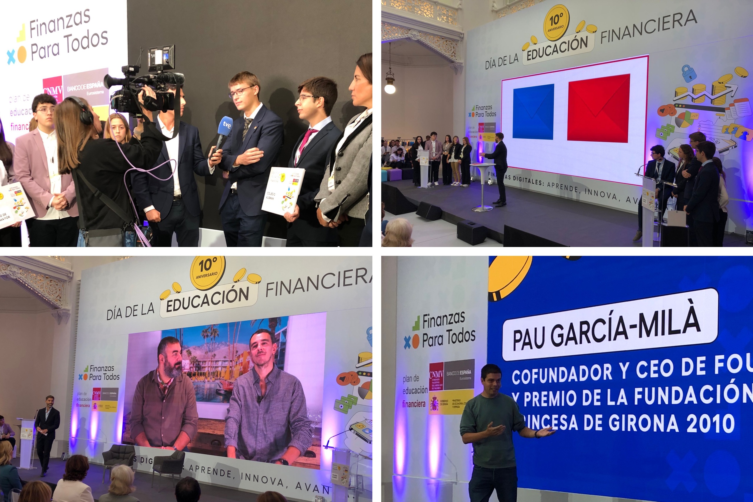 La jornada finalizó con un panel de preguntas de los jóvenes sobre finanzas digitales que respondieron Pilar Alegría, ministra de Educación, José Luis Escrivá, Gobernador del Banco de España, y Rodrigo Buenaventura, Presidente de la CNMV. El ministro de Economía, Comercio y Empresa, Carlos Cuerpo, participó con un video recordando la importancia de la educación financiera y dando la enhorabuena a los centros finalistas del Concurso de Conocimientos Financieros.